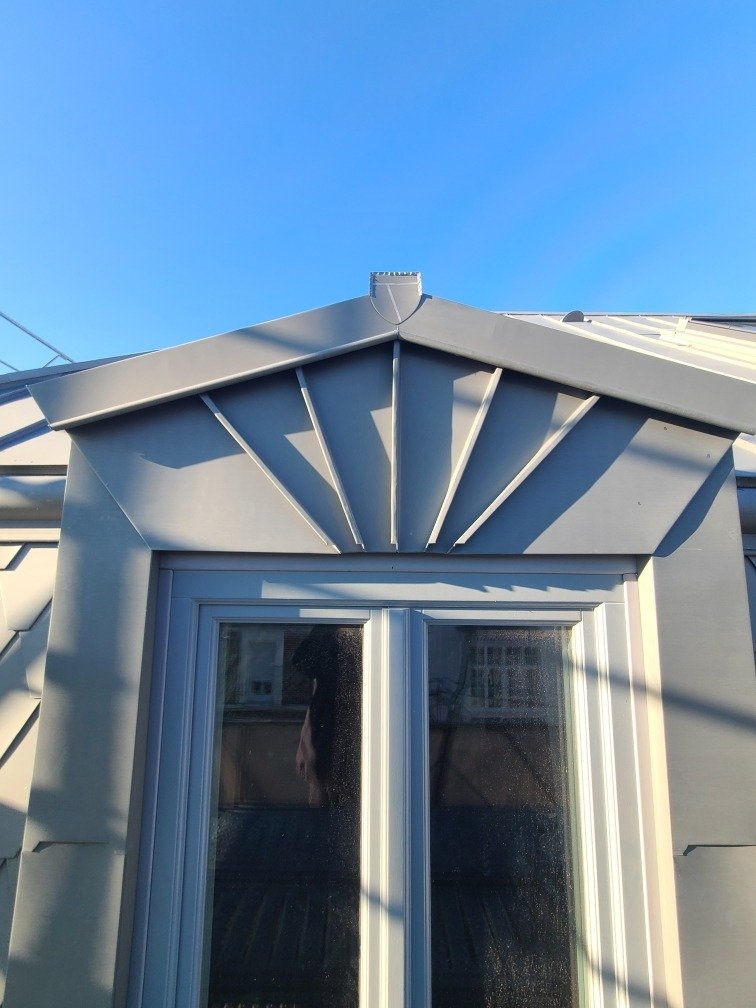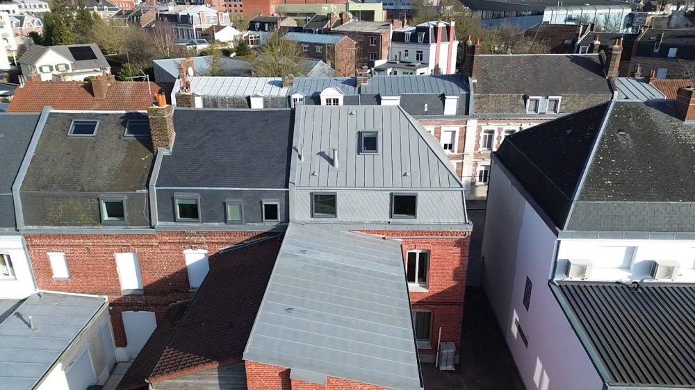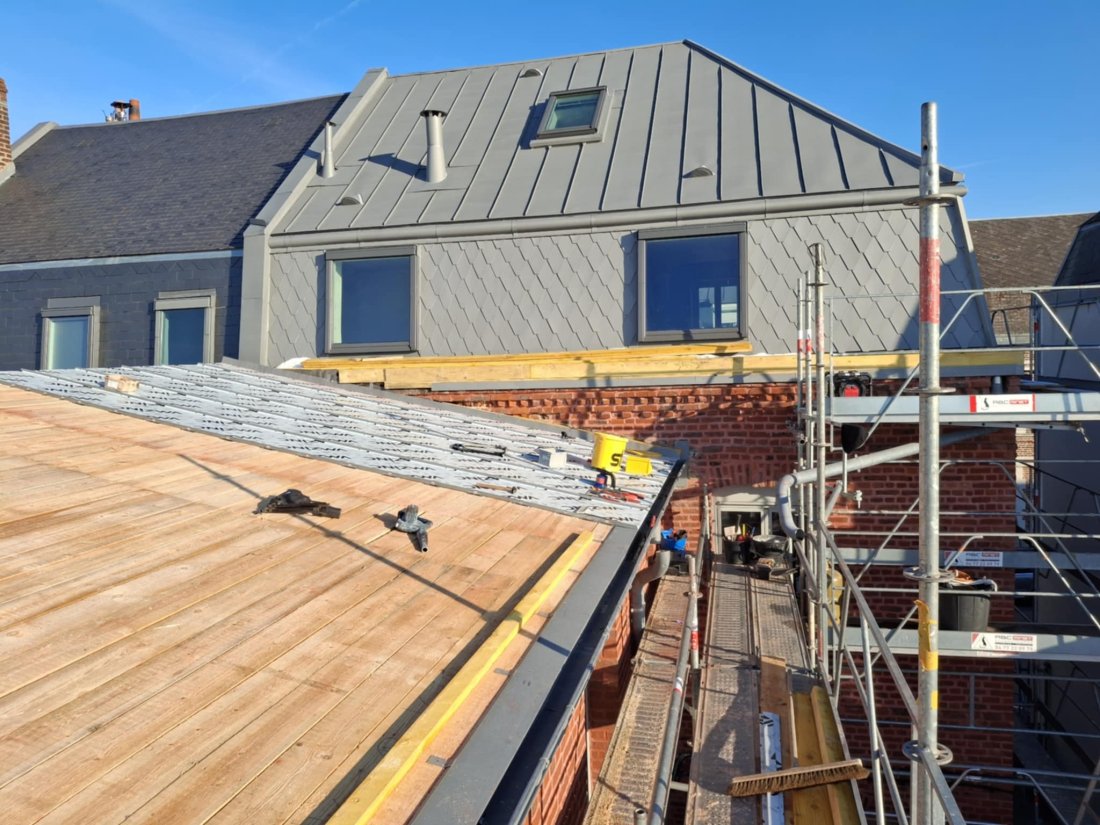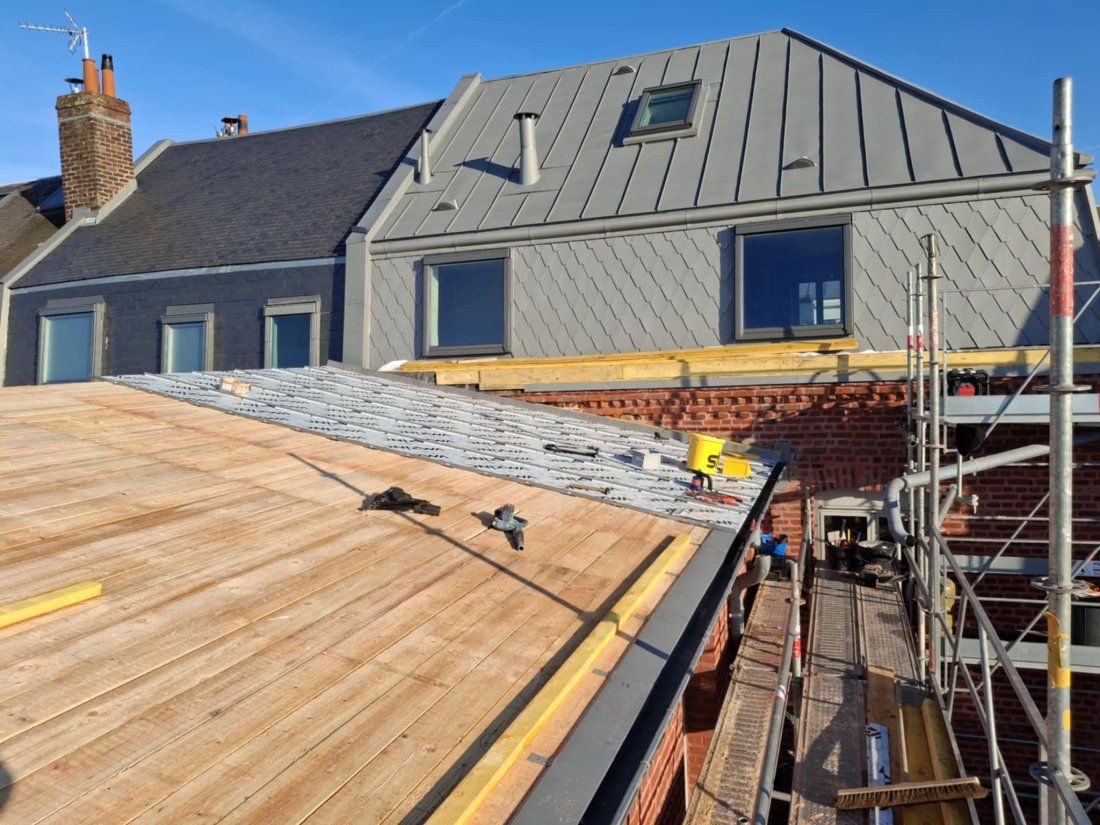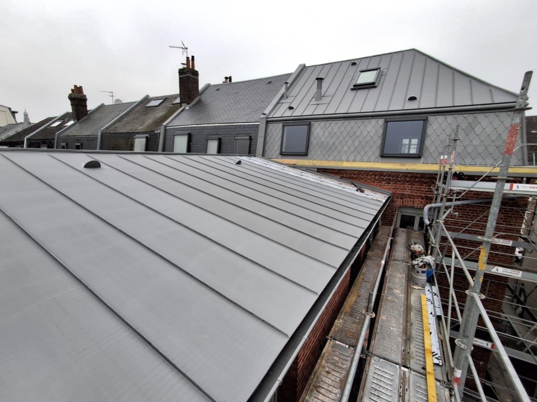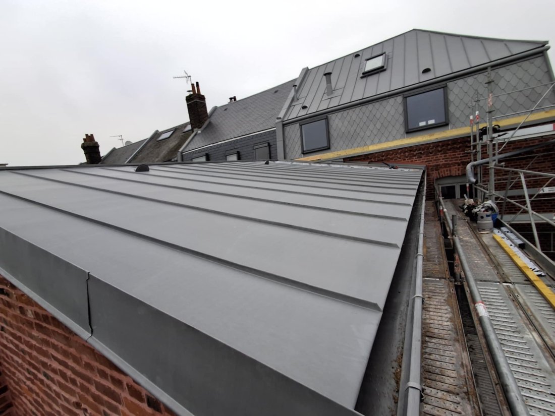 Couverture en Ecaille de Zinc Quartz a Arras , couverture Zinc Joint debout VMZINC sur Arras , Isolation laine de verre en comble perdu