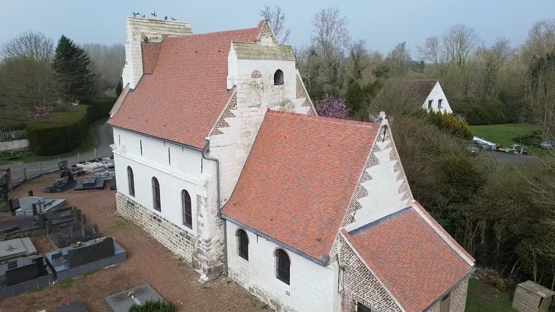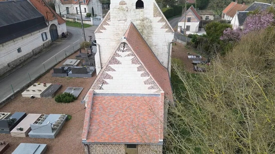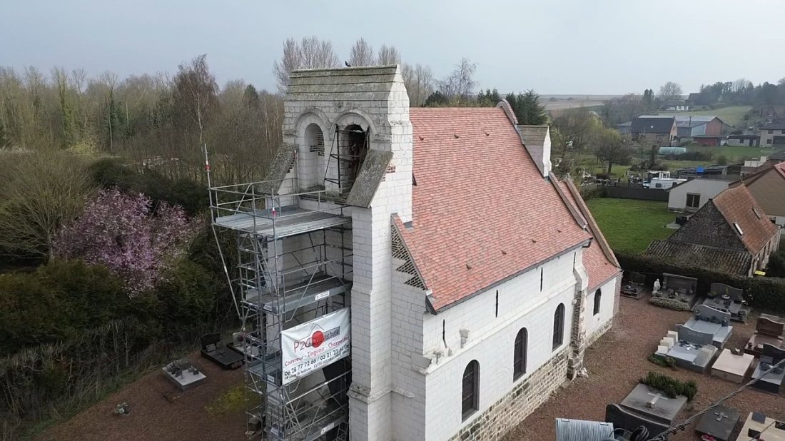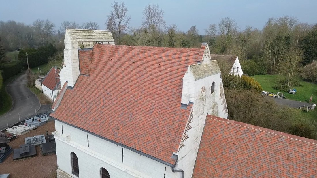 Rénovation de la toiture d’une église du XIe siècle à Capelle-Fermont : restitution fidèle avec tuiles plates Édition Aléonard, charpente en chêne, abaissons en Iroko. Un chantier d’exception signé P2C Couverture.